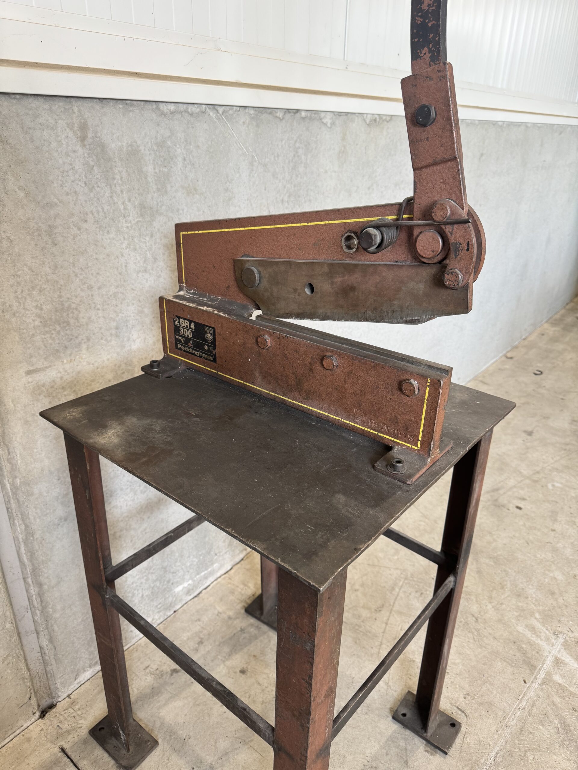 Robuuste Peddinghaus 2 BR 4 knipschaar. Gemonteerd op een stevige standaard.